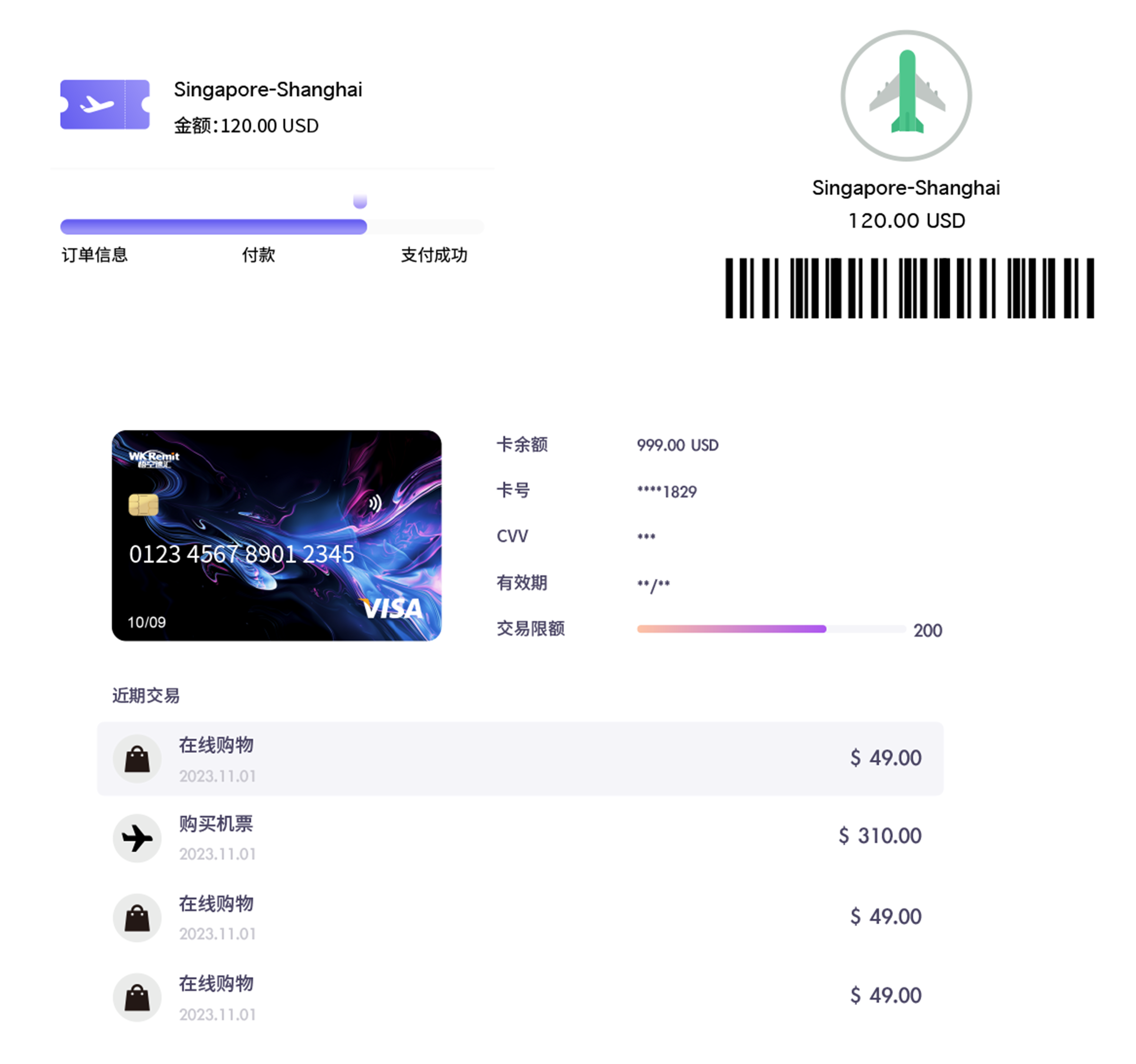 悟空速汇携手卡组及发卡机构,合作推出虚拟信用卡,可支持MasterCard、 Visa的线上商户消费,为全球客户提供一站式付款解决方案,实现企业采购、数字经济支出、海外出行、定期支付等多种场景的支付需求。